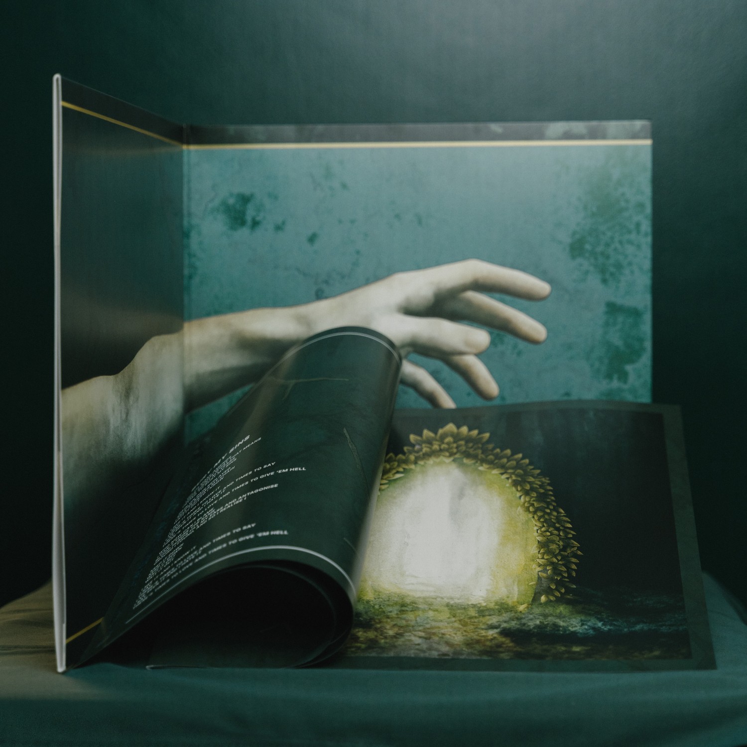 Provided in premium gold-foiled gatefold packaging alongside a large-scale art & lyric booklet.